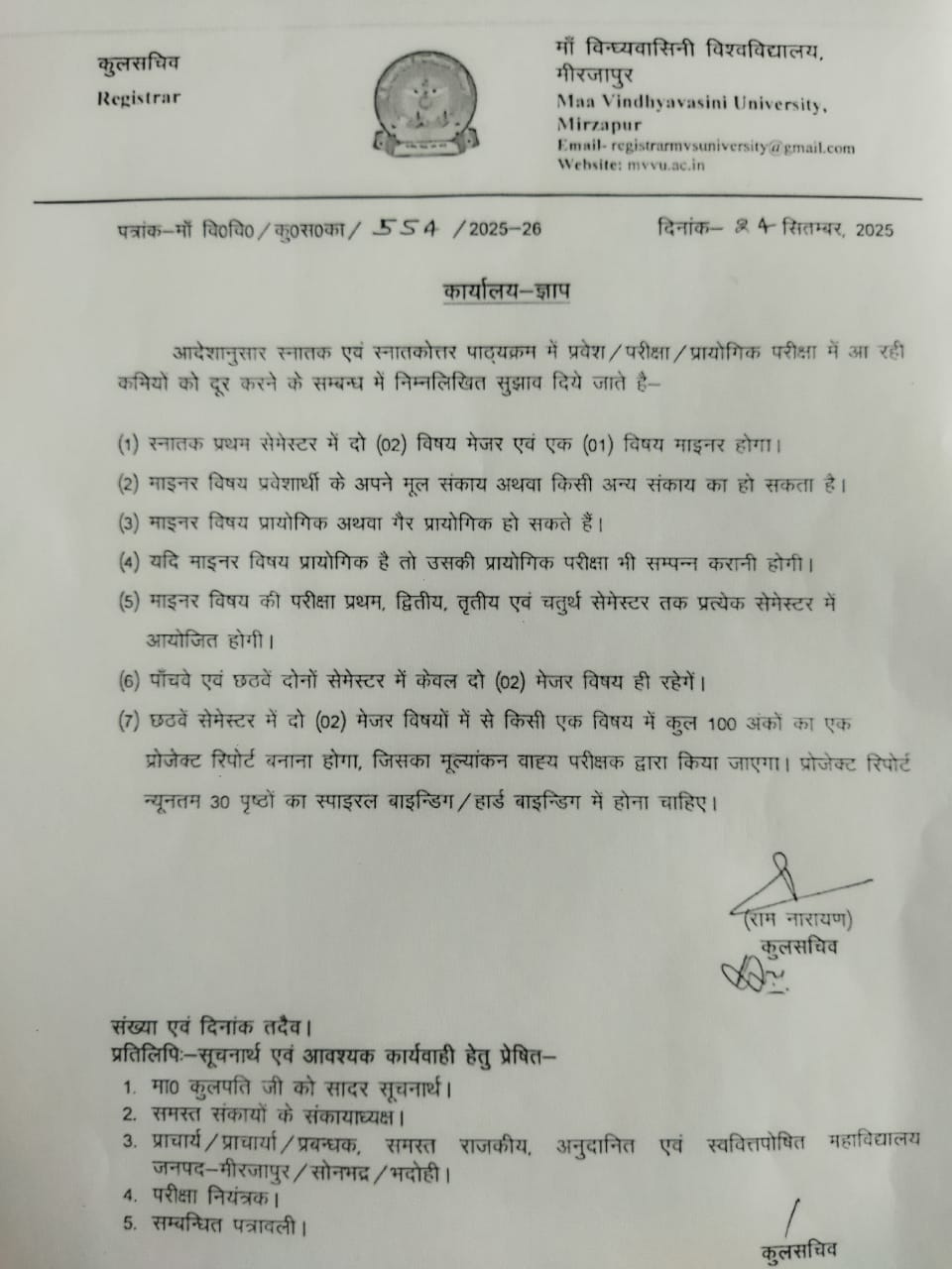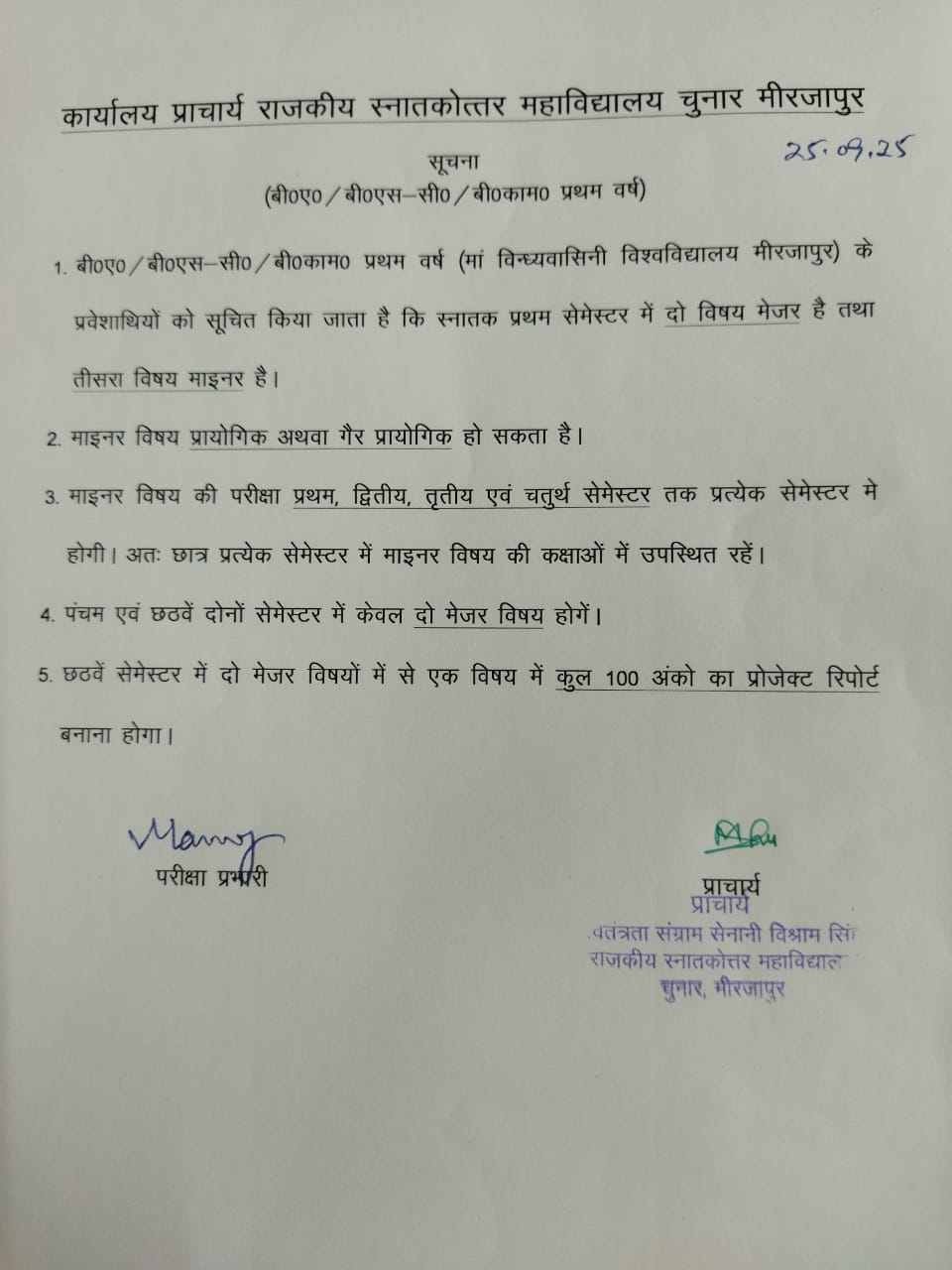 पंचम सेमेस्टर छात्रों के लिए आवश्यक सूचना